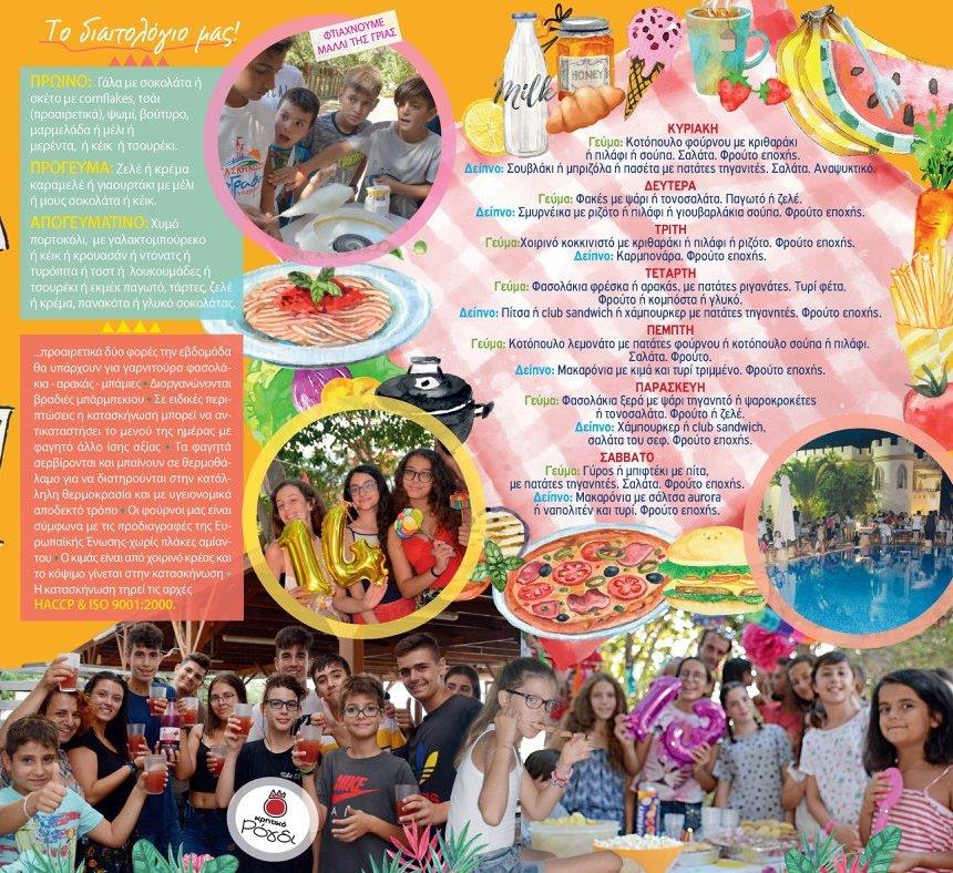 Γεύμα: Κοτόπουλο φούρνου με κριθαράκι ή πιλάφι ή σούπα. Σαλάτα. Φρούτα εποχής.